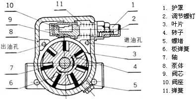 (4)為維持正常出油效率及壓力,可利用葉片泵上溢流閥的調(diào)節(jié)螺釘進(jìn)行油路的壓力調(diào)節(jié)。